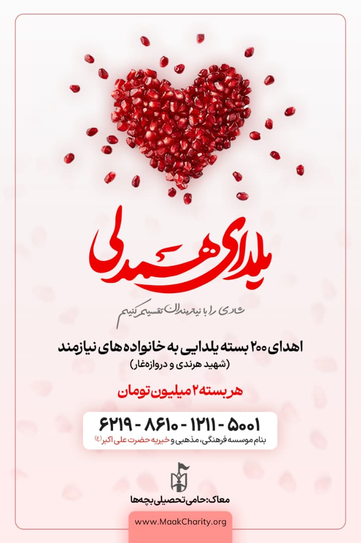 به همین مناسبت، خیریه معاک در نظر دارد با همراهی و همدلی خیرین گرامی، شرایطی فراهم آورد تا خانوادههای تحتپوشش و نیازمند نیز؛ این شب را با آرامش و آسایش بیشتری سپری کنند.